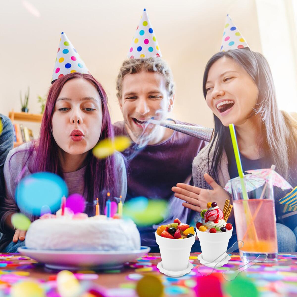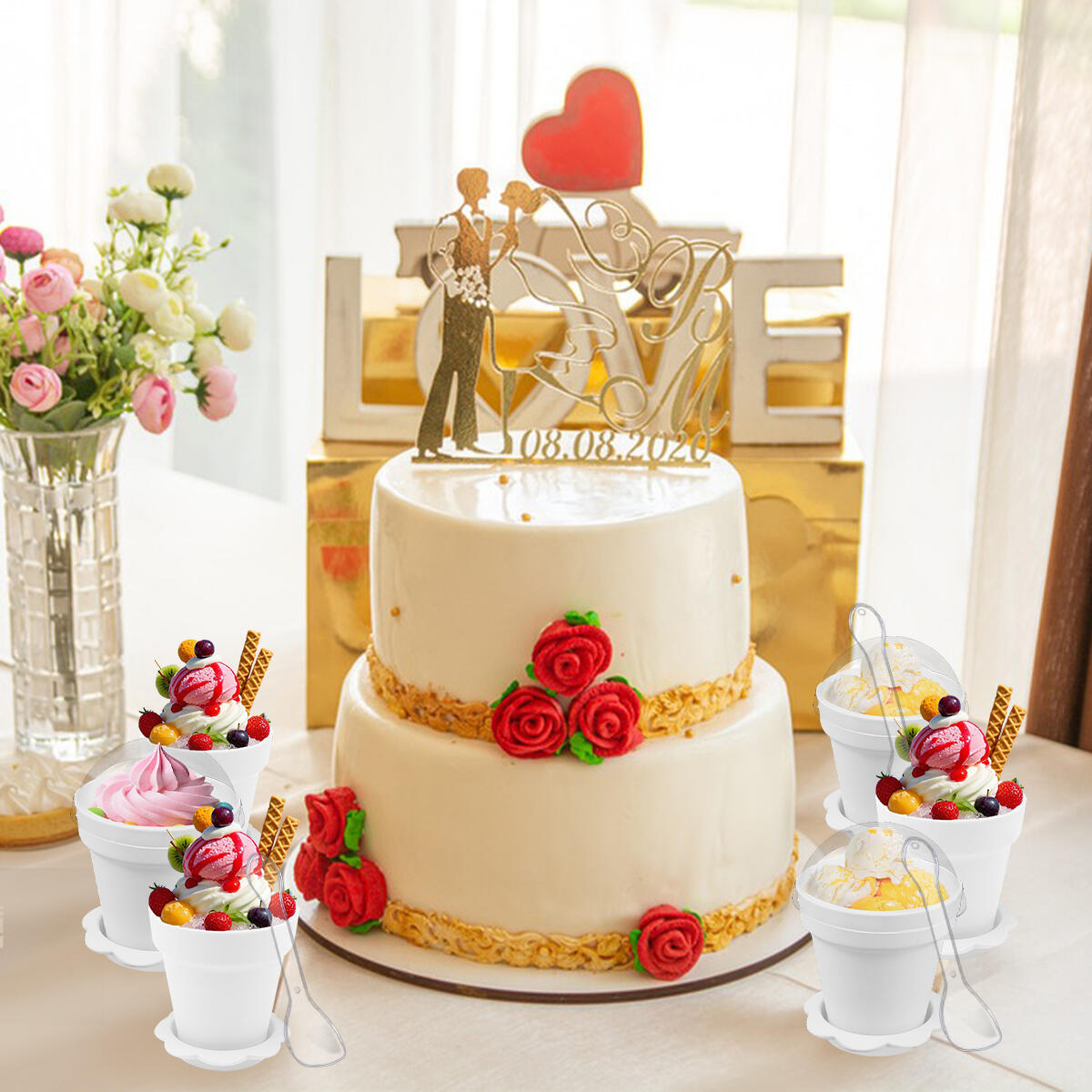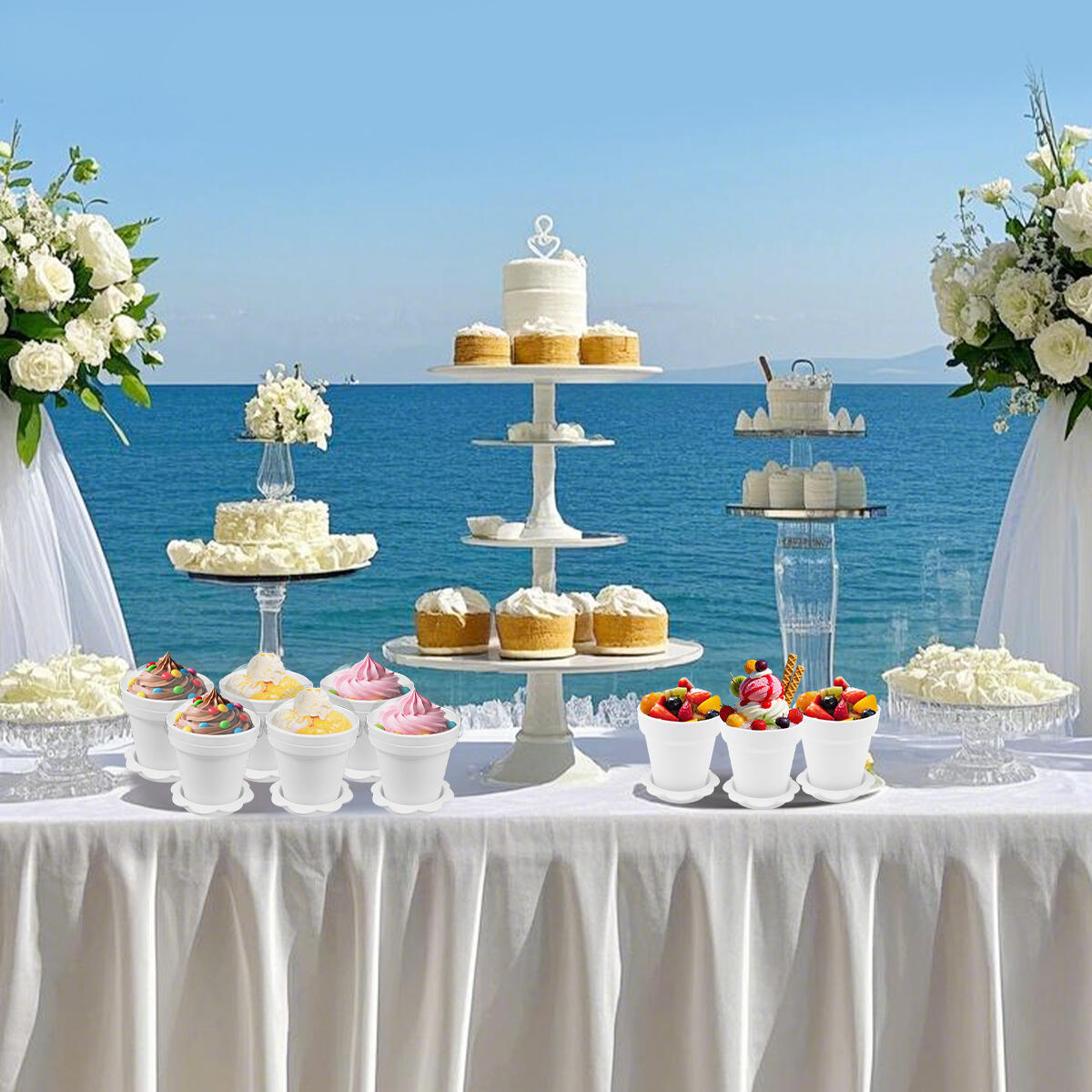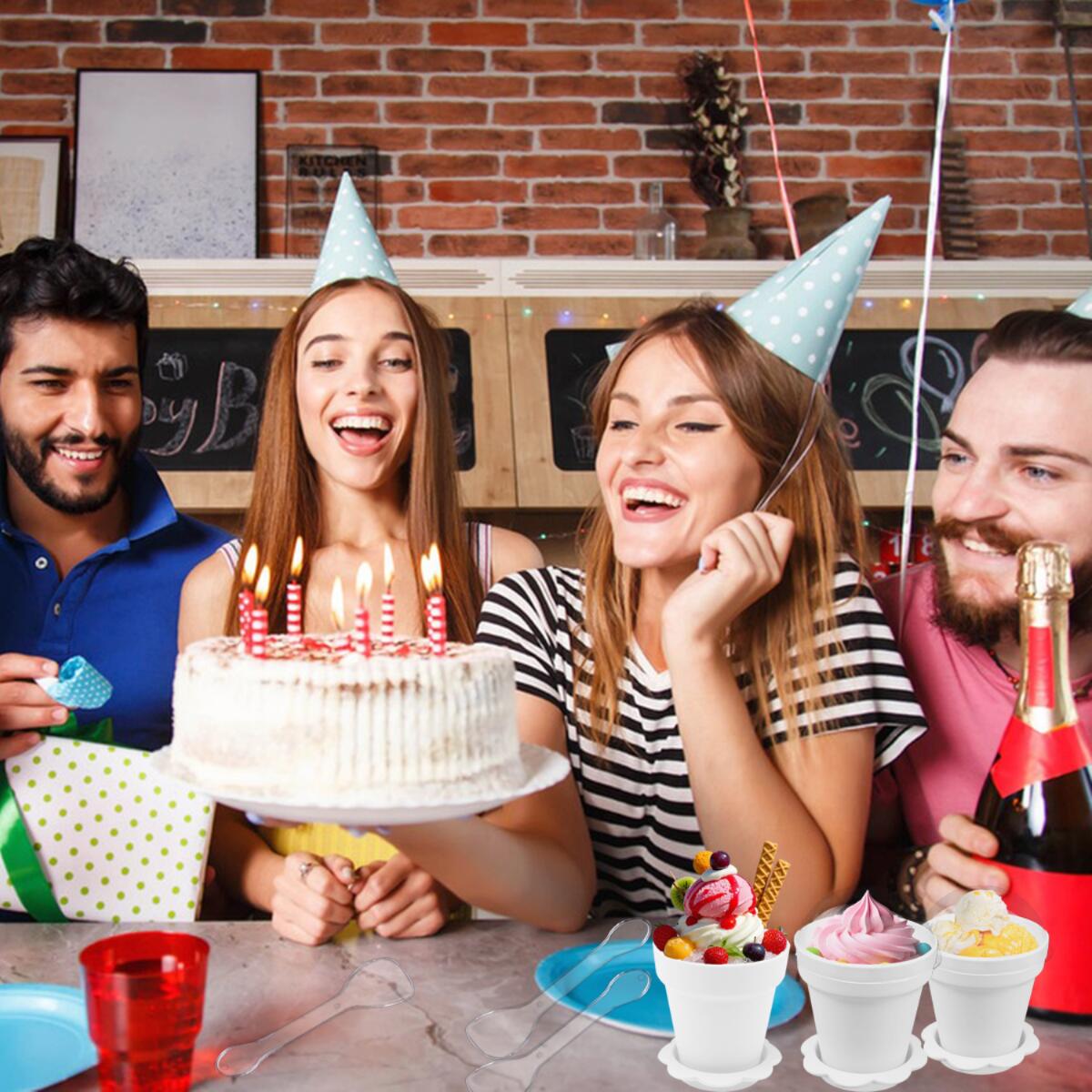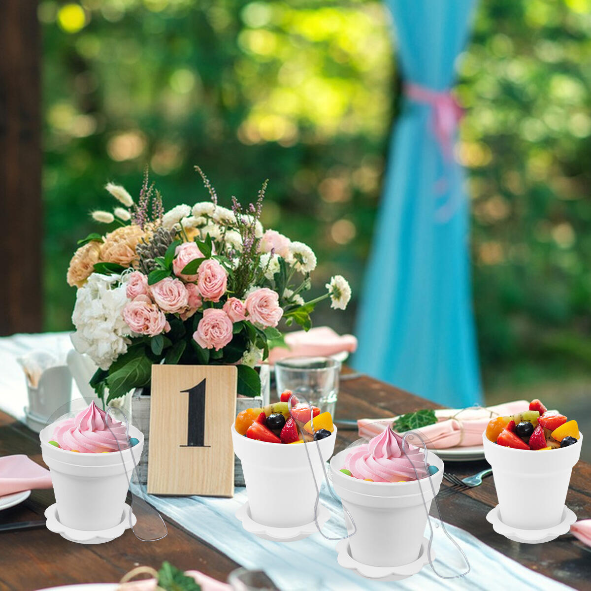 Package contents: 40 Pcs Flowerpot Dessert Cup with Lid and Bottom Tray 100 Pcs Spoons