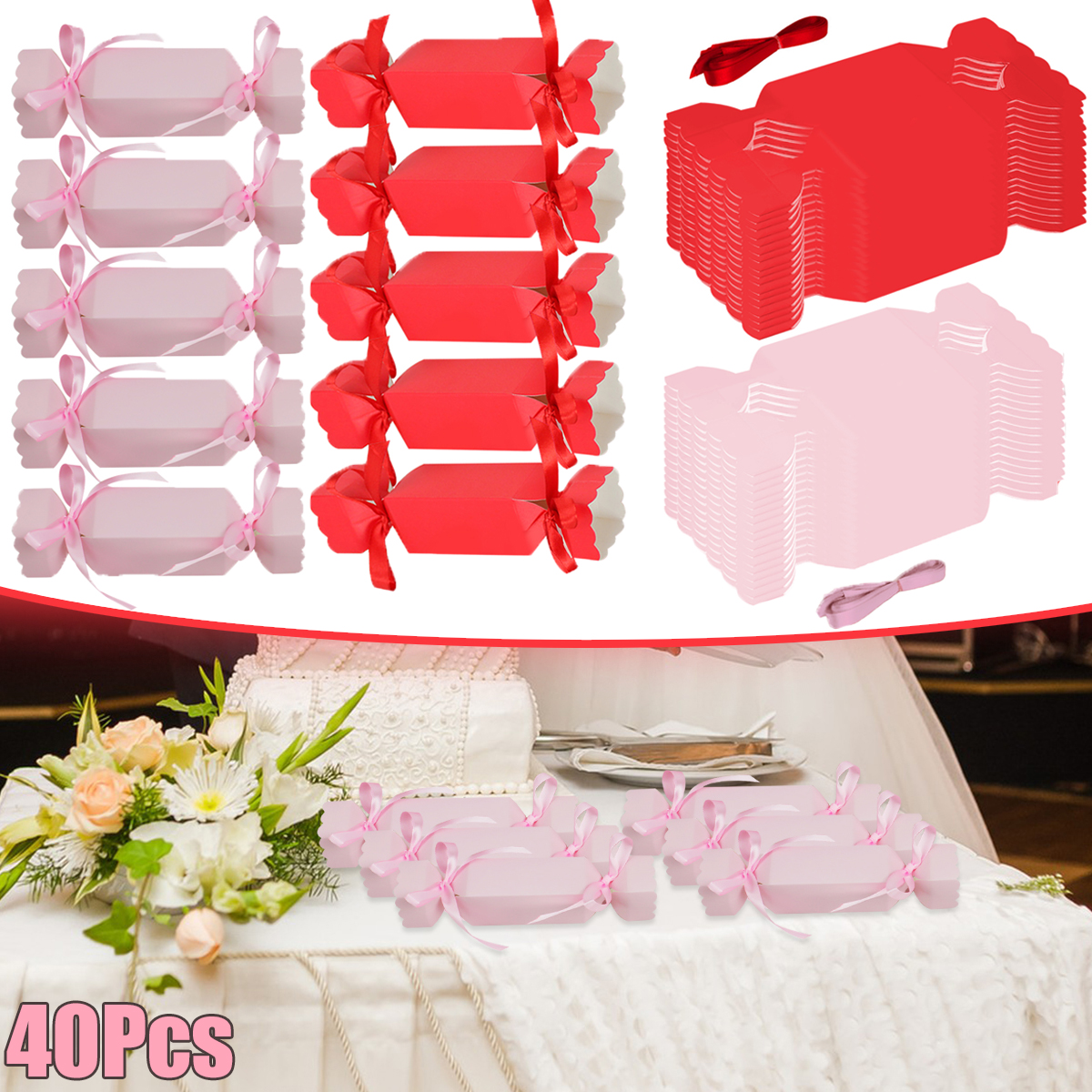 Package Contents: 40Pcs Candy Shaped Gift Boxes with Ribbon