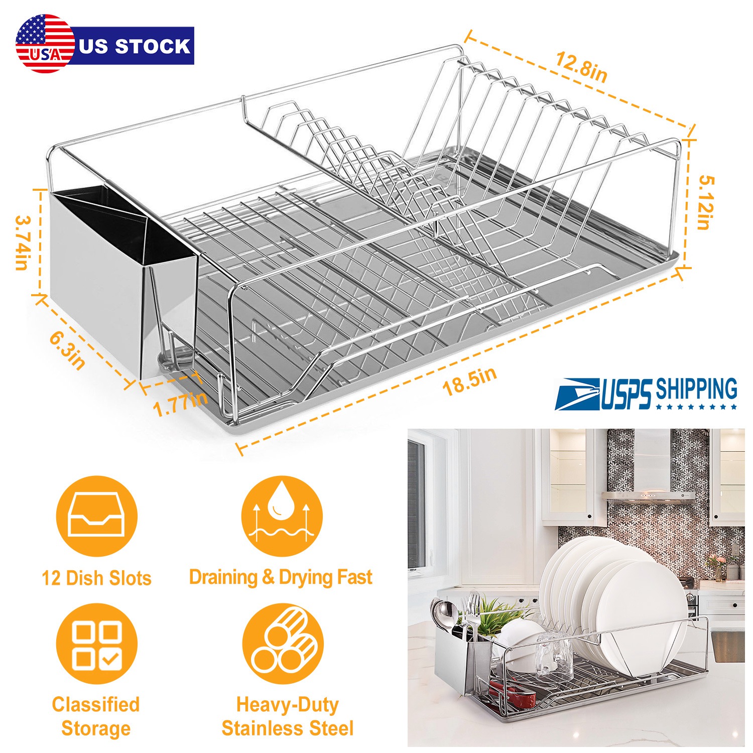 * DURABLE STAINLESS STEEL CONSTRUCTION: Adopting high-grade stainless steel materials and premium electroplating finish, our single-tier dish rack is sturdy, durable, not easy to rust and gorgeous to match with all types of kitchen rooms.