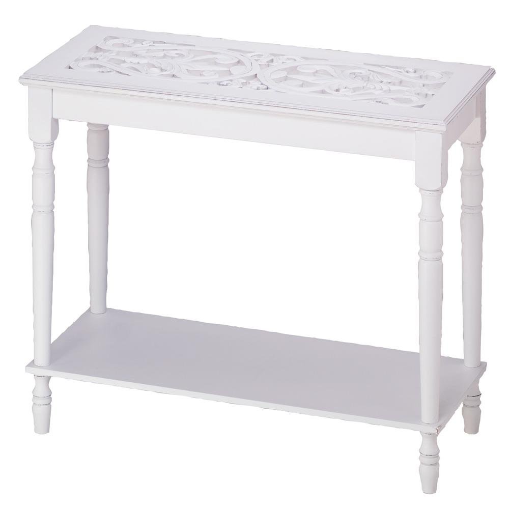 • Turned legs and an intricately carved top add rich visual appeal to this enchanting white wood table. Functional and stunning home décor that will look amazing anywhere you display it!